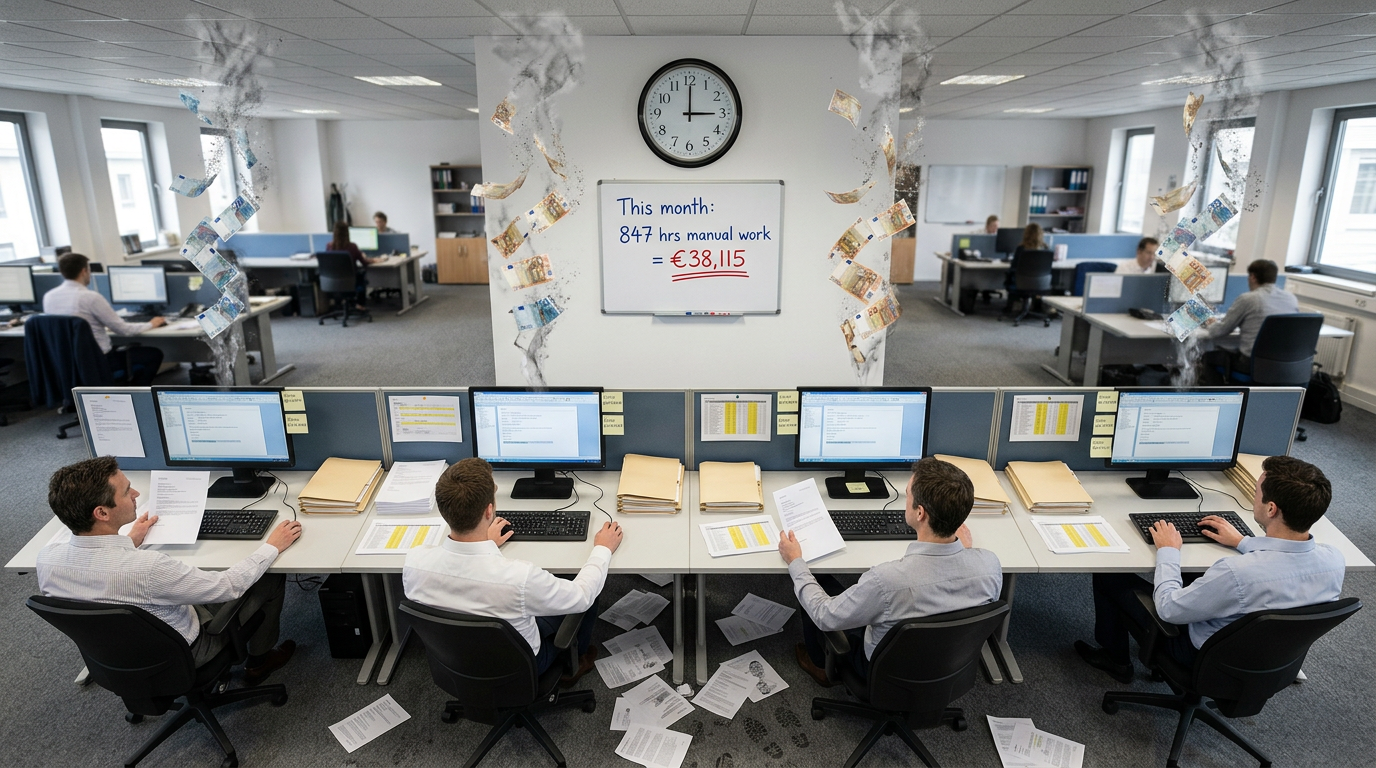 Der gefährliche Teil liegt nicht in der sichtbaren Arbeitszeit allein. Manuelle Übergaben zwischen E-Mail, ERP, CRM, Tabellen, PDF-Dokumenten und Freigaben erzeugen Wartezeiten, Fehler, Rückfragen und Medienbrüche. Diese Verluste tauchen in keiner einzelnen Kostenstelle sauber auf. Sie verteilen sich auf Sachbearbeitung, Vertrieb, Buchhaltung, Operations und Management. Am Ende fehlt nicht nur Zeit, sondern Marge, Reaktionsgeschwindigkeit und Skalierbarkeit.
